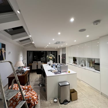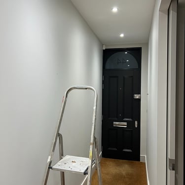 This wasn't a full renovation - the owners in Fulham simply wanted their home to feel fresh again. A busy family home naturally picks up scuffs, wear marks and small signs of life over the years. We were asked to repaint the main hallway, the staircase walls, and the kitchen extension. While we were there, the owners added a few extra jobs: replacing old silicone seals in the bathrooms, fitting new Velux blinds, and touching up the front facade and metal railings outside.