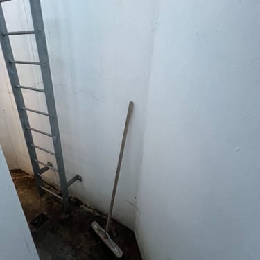 The hallway and stairwell - high-traffic areas with visible scuffs and marks